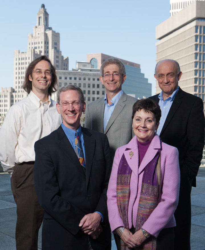 Wetle with the first department chairs of the school: Chris Kahler, Ira Wilson, Stephen Buka and Costantine Gatsonis.
