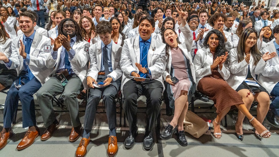 “The 145 of you have the power to define your own community in a way that not only affects how you all experience the challenge of this journey but also creates a family whose impact can extend far beyond the walls of the medical school,” Barshay said. “In a world of big problems, small deeds done can be better than great deeds planned.”